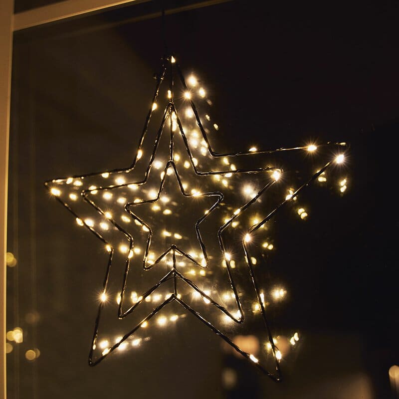 See LED-jõulutäht aknakaunistusena loob meeleoluka valgustuse mitte ainult jõuluajaks, vaid sobib suurepäraselt ka elutuppa või lastetuppa. 50 LED-iga valgustatud täht kiirgab sooja valget valgust ja loob kutsuva õhkkonna.